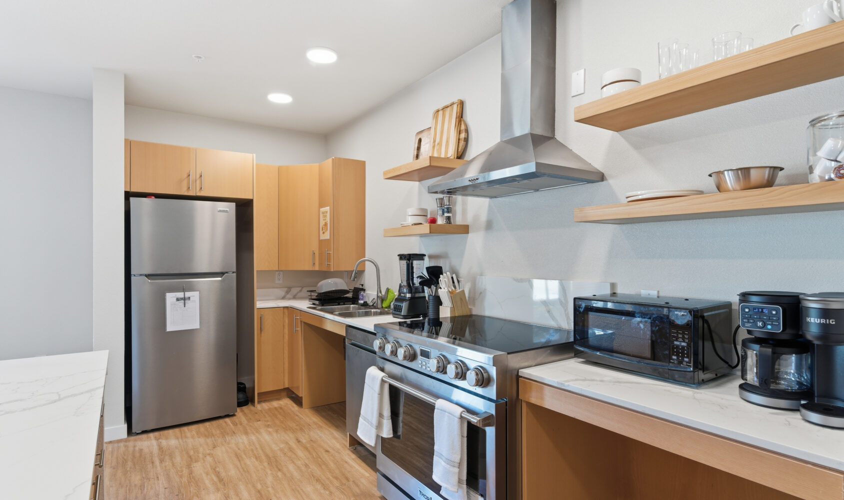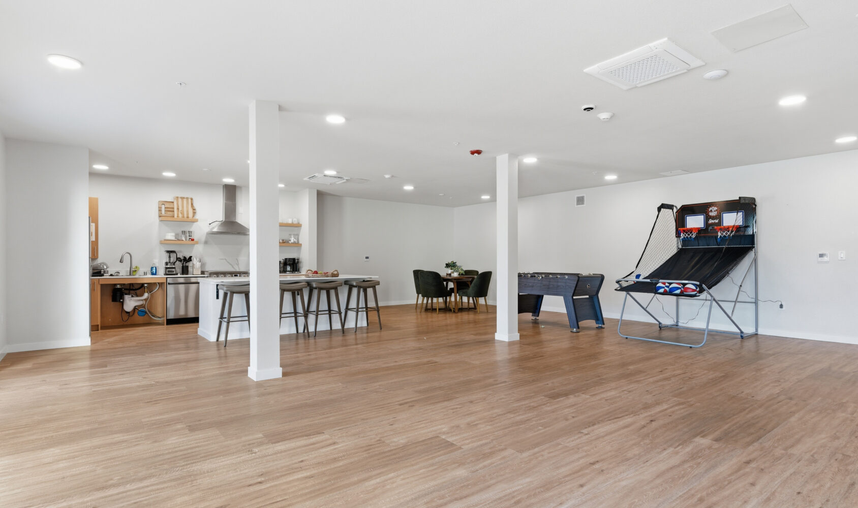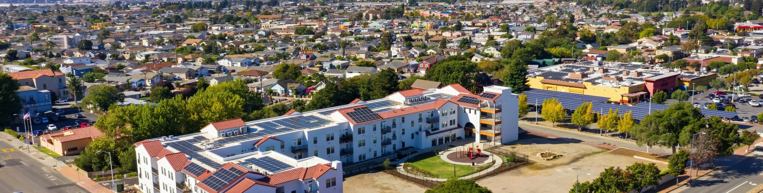 - Espacio Comercial: Presenta atractivos locales comerciales y de servicios en la planta baja a lo largo de San Pablo Avenue para negocios locales y servicios comunitarios.
